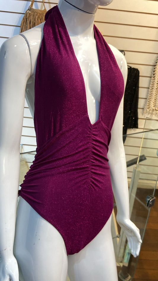 Maiô Metalizado Decote Profundo Pink