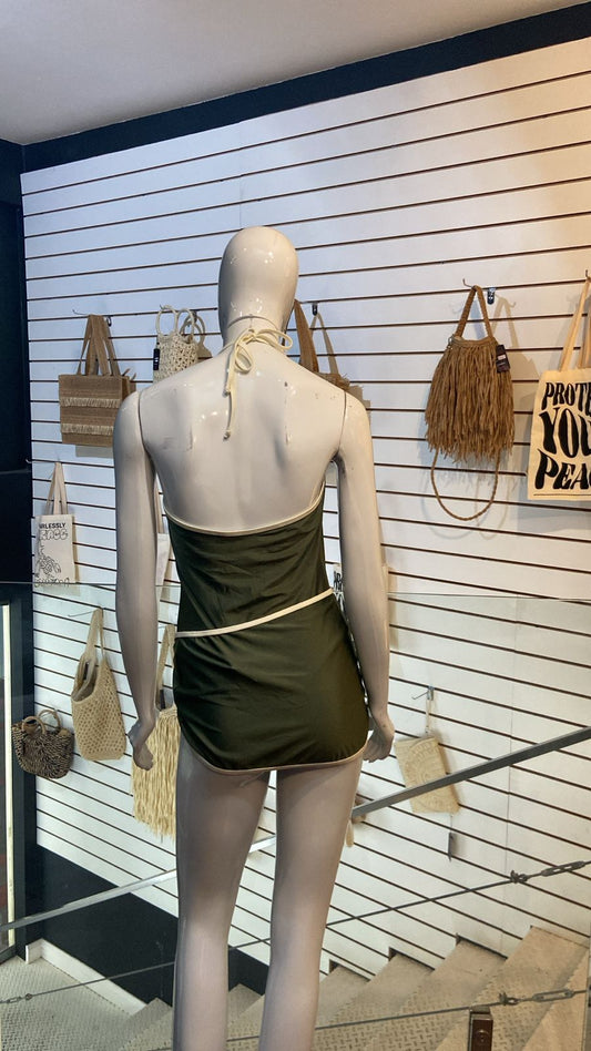 Conjunto Maiô + Pareô Verde Militar com Acabamento Off