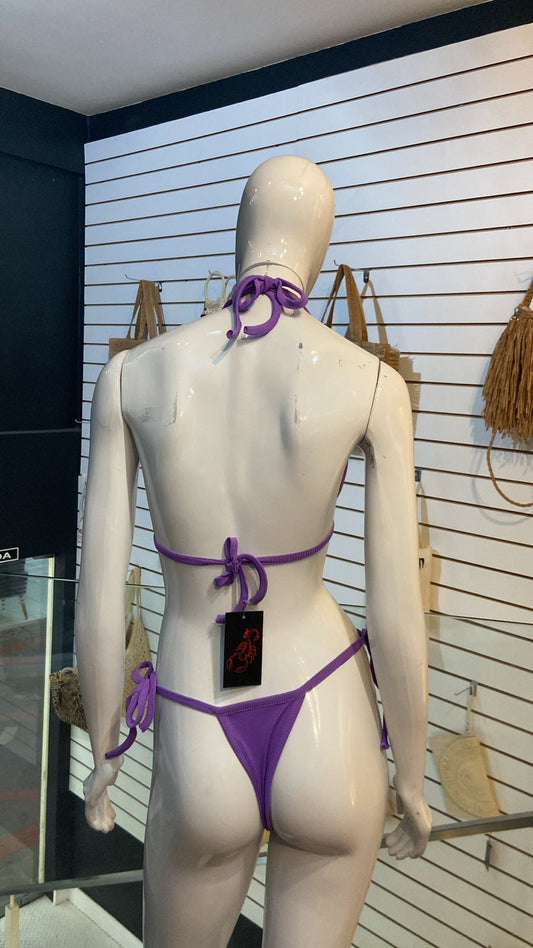 Biquíni Lilás Canelado com Detalhes Dourados