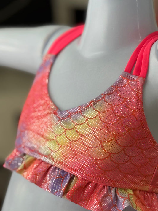 Biquíni Infantil Sereia Pink com Babados e Costas Cruzadas