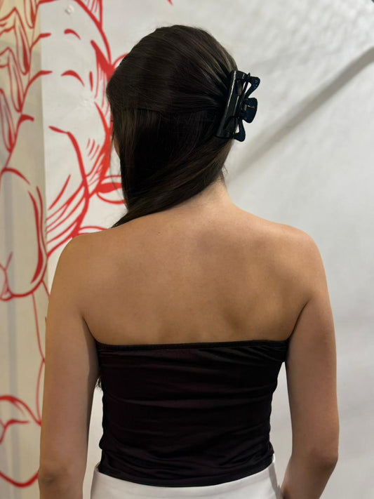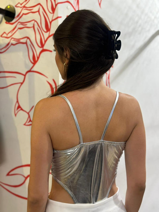 Body com Recorte Assimétrico e Detalhe Orgânico Dourado no Ombro