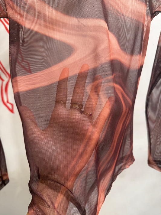 EsgotadoBody Manga Longa Tule Degradê Marrom