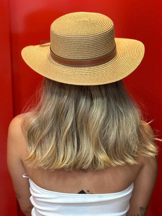 Chapéu Palha Natural com Fita Caramelo – Aba Média