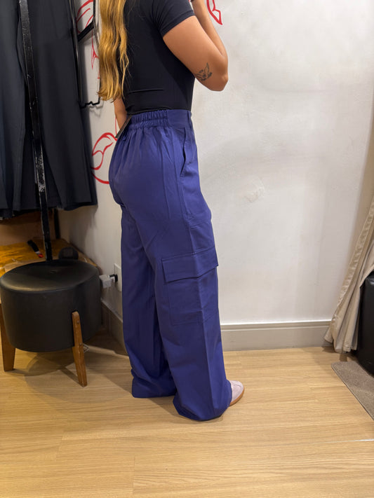 Calça Cargo Pantalona Azul Intenso
