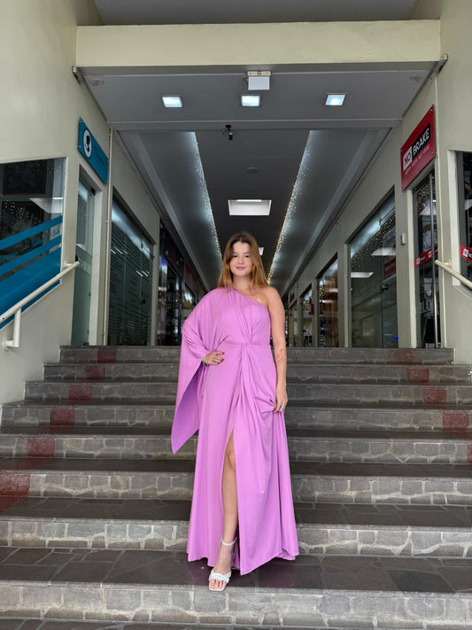 Vestido fúcsia um ombro só