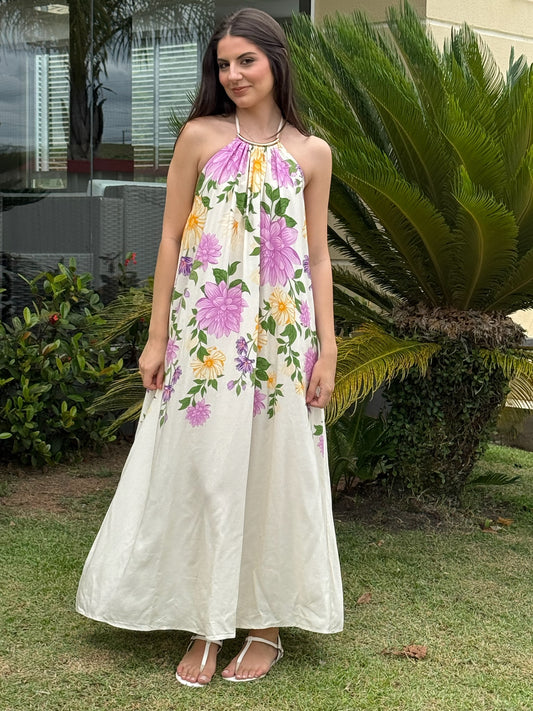 Vestido Indiano Florido Longo