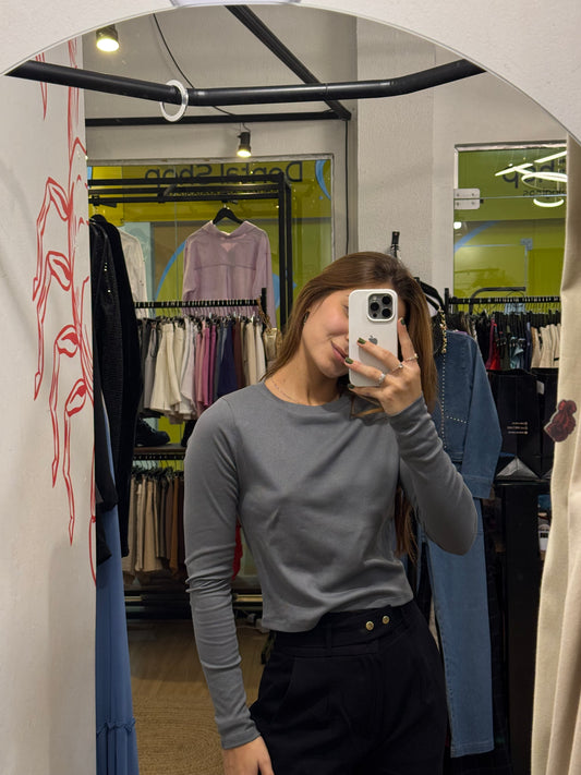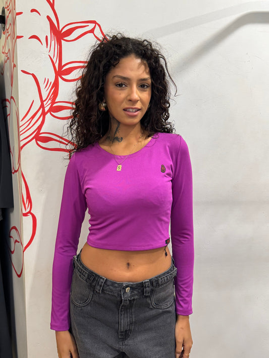 Cropped manga longa com detalhe