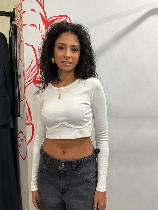 Cropped manga longa com recorte