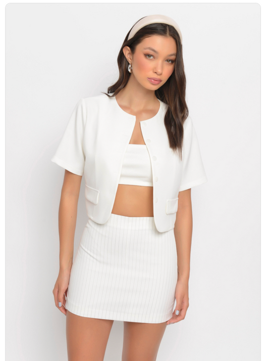 Short Saia Risca de Giz Branco
