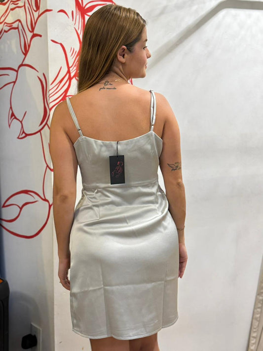 Vestido Curto Acetinado Prata