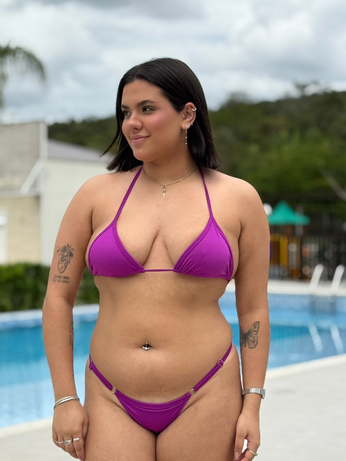 Biquíni em tamanho único, clássico e versátil, com top cortininha ajustável. Garante conforto e modelagem perfeita, valorizando o corpo com toque suave e tecido de alta qualidade.