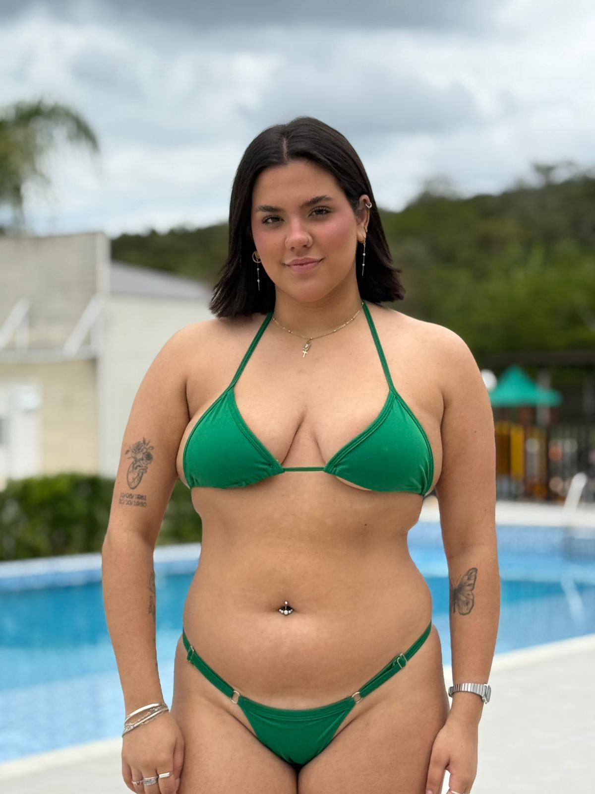 Biquíni Cortininha Verde com Calcinha Fio Duplo