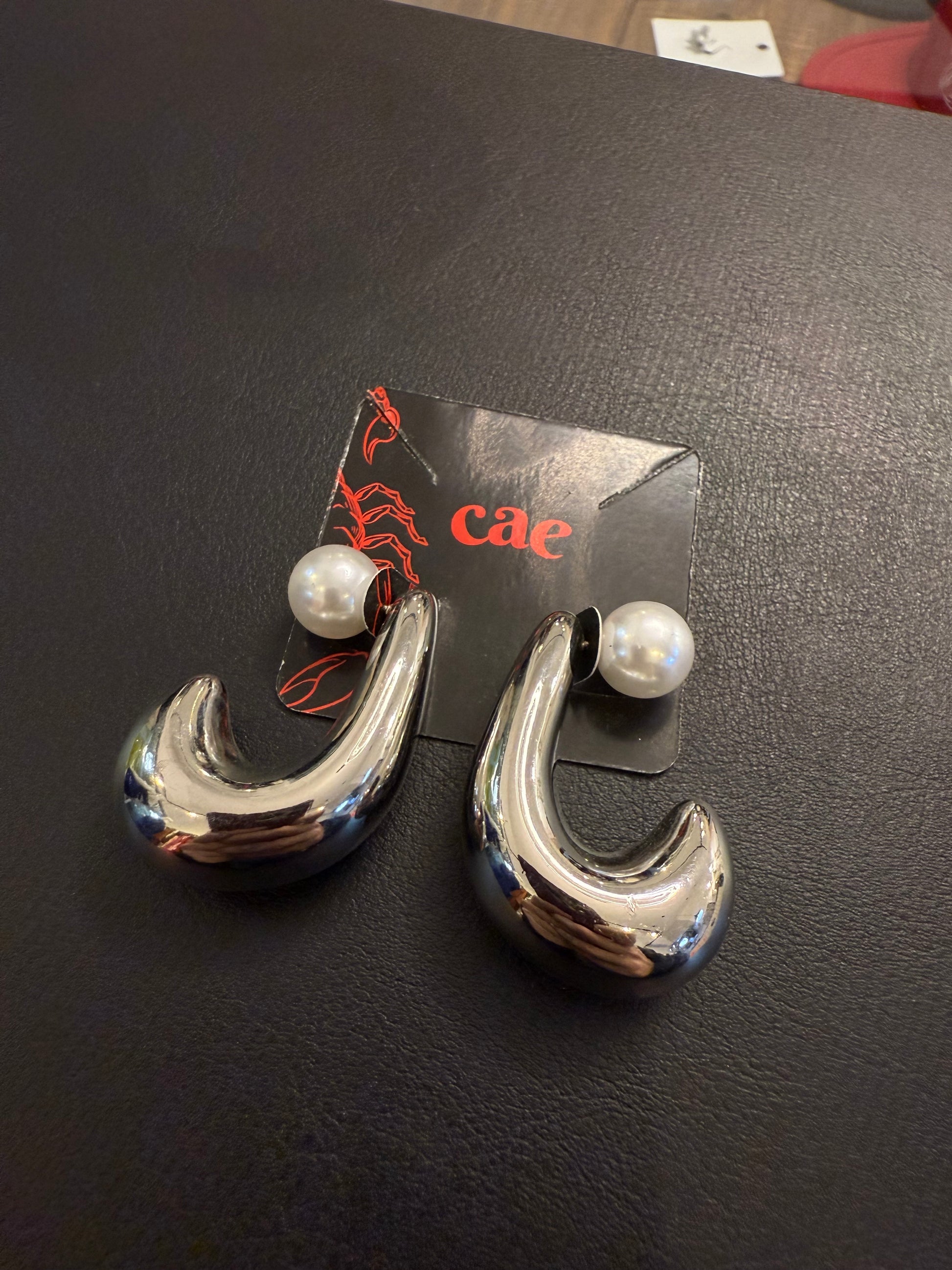 Brinco prata de argola grossa com fecho de pérola.