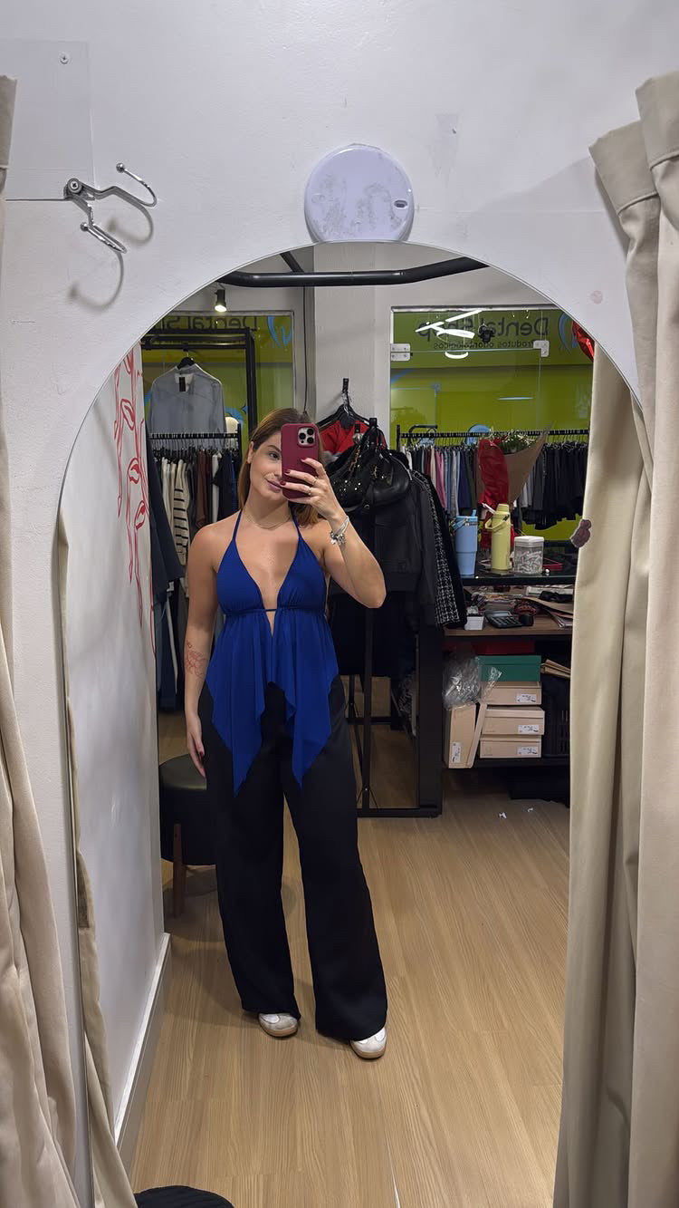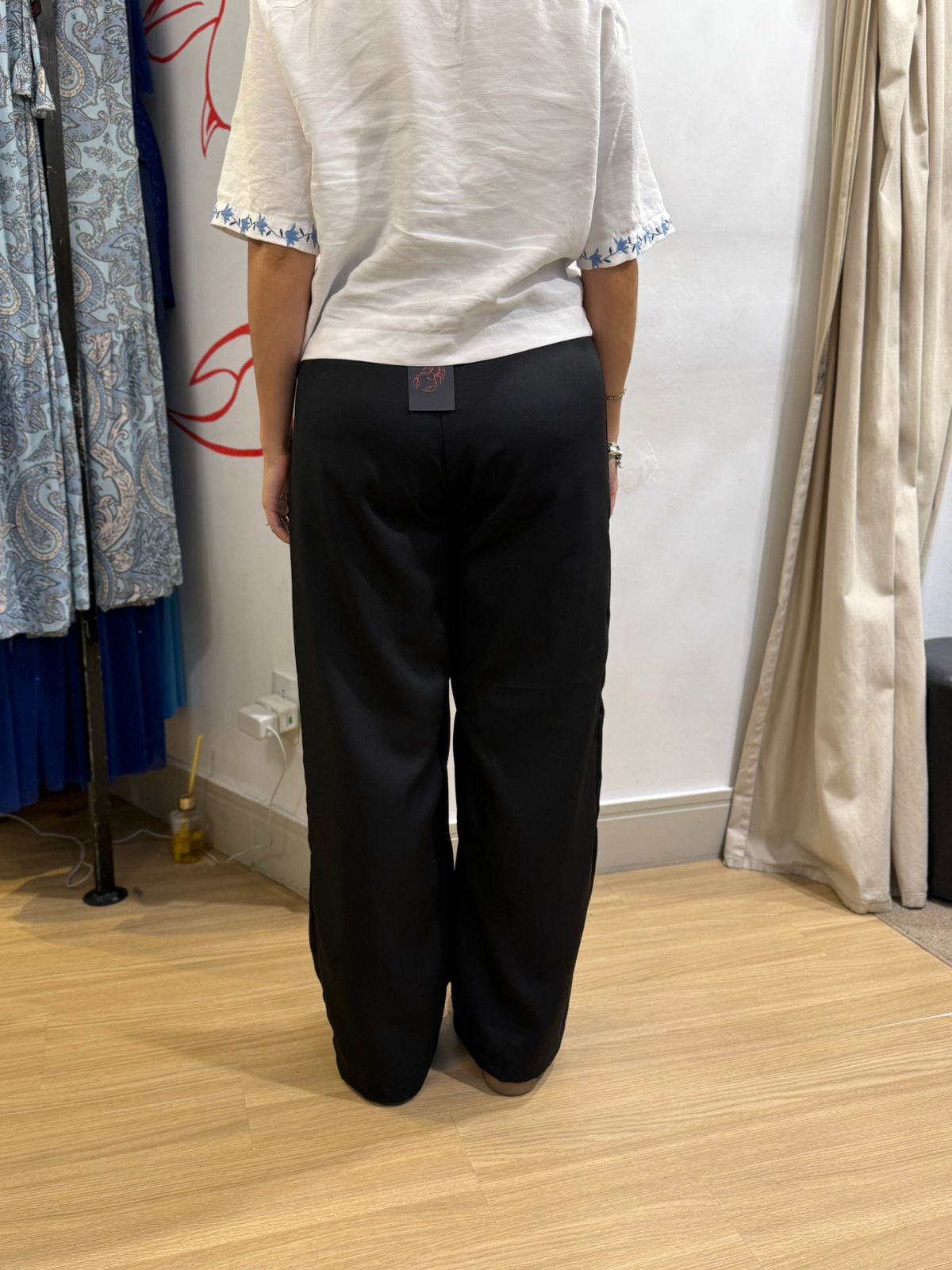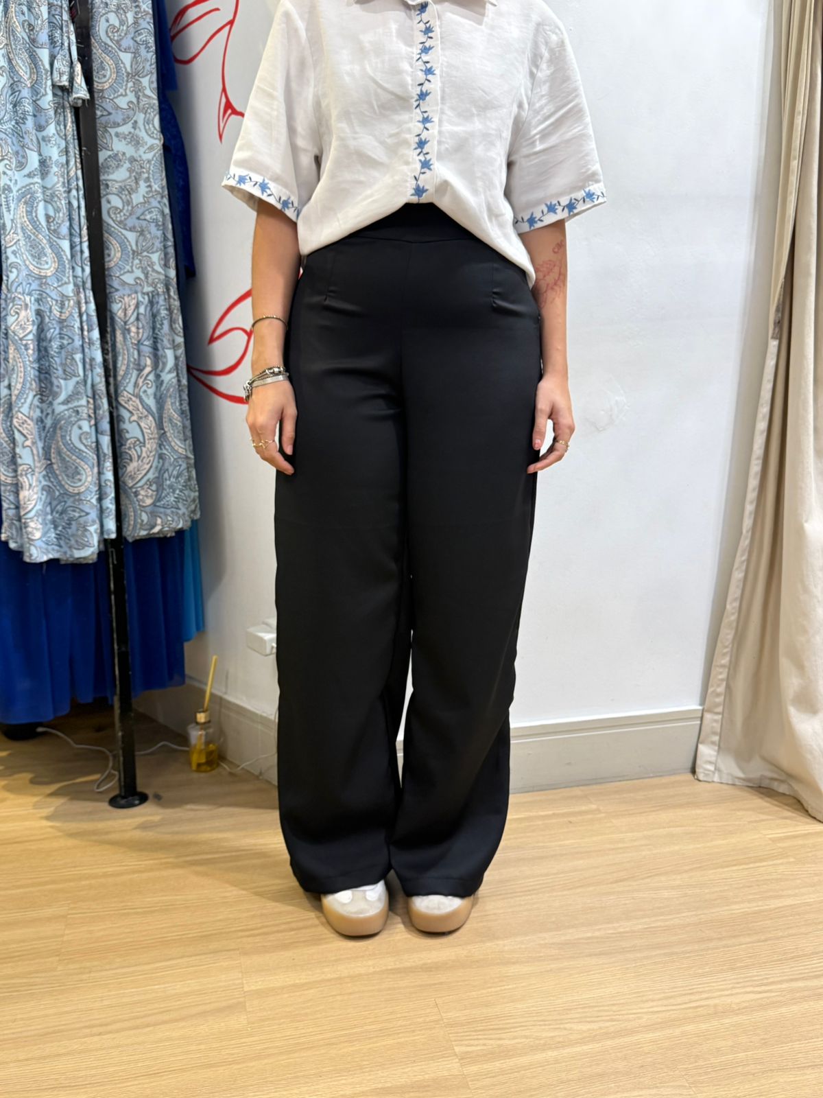 Calça pantalona preta em alfaiataria Cae, possui cós largo, zíper na lateral. Caimento perfeito!