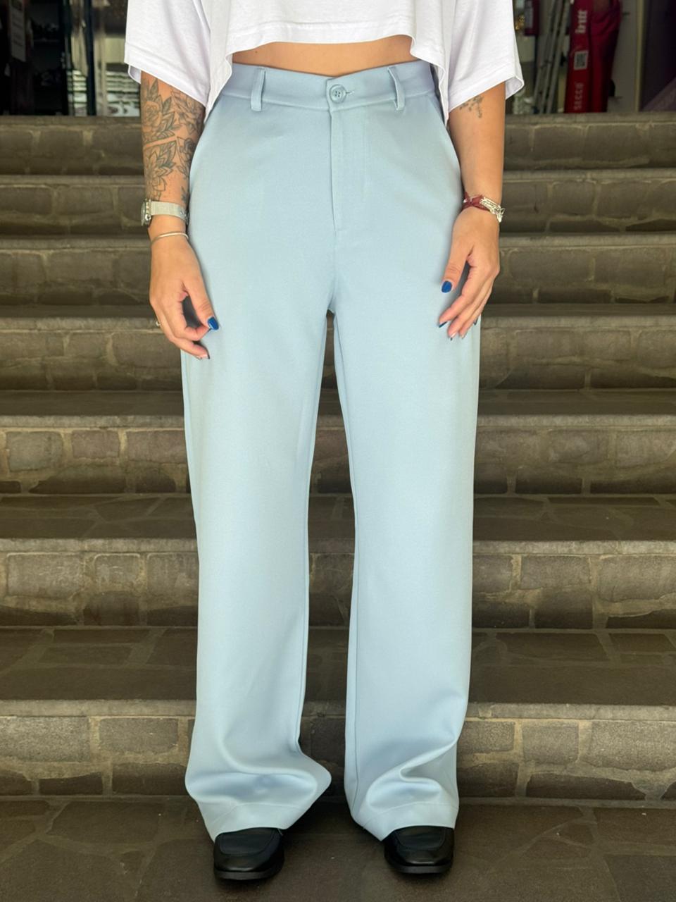 Elegante e delicada, a calça reta de alfaiataria em azul bebê traz sofisticação com um toque suave de cor. Com caimento impecável, cintura confortável e estrutura leve, ela ilumina qualquer produção. Perfeita para compor looks modernos com camisas, croppeds ou tricôs.
