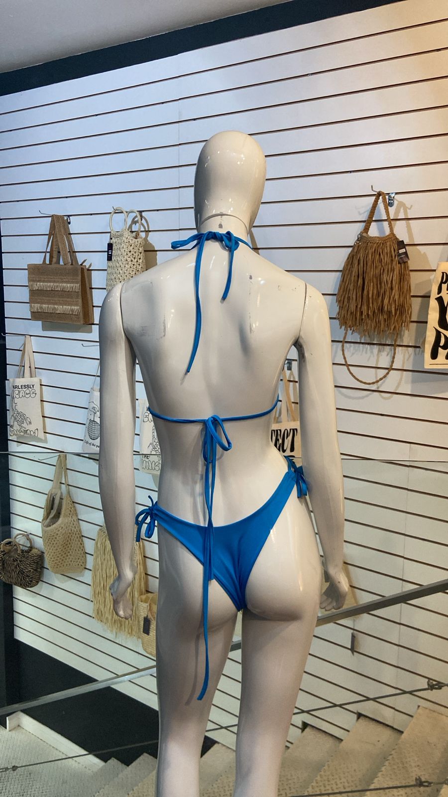 O top cortininha possui amarrações ajustáveis e detalhe dourado central discreto, que adiciona elegância sem perder a proposta minimalista.