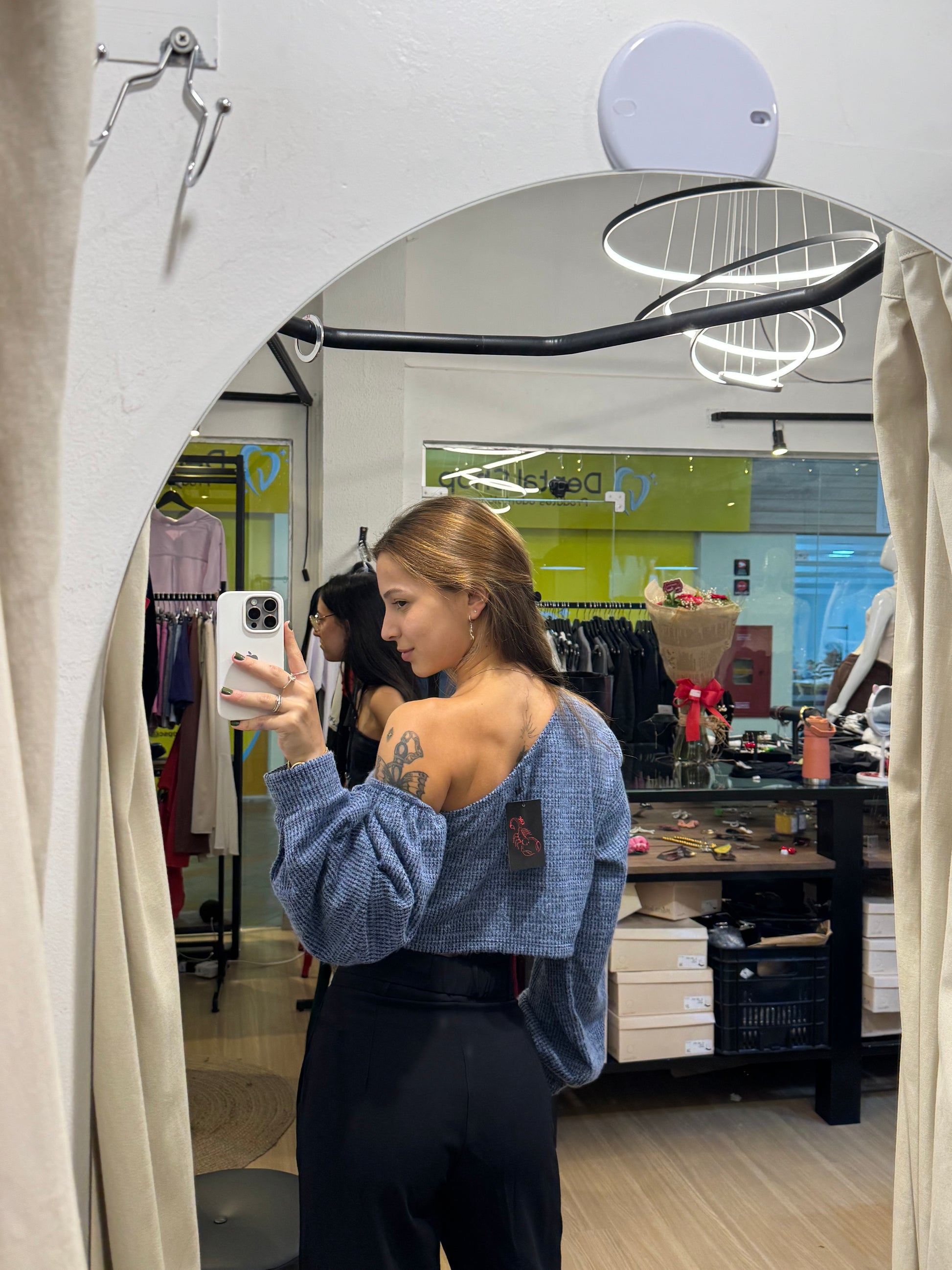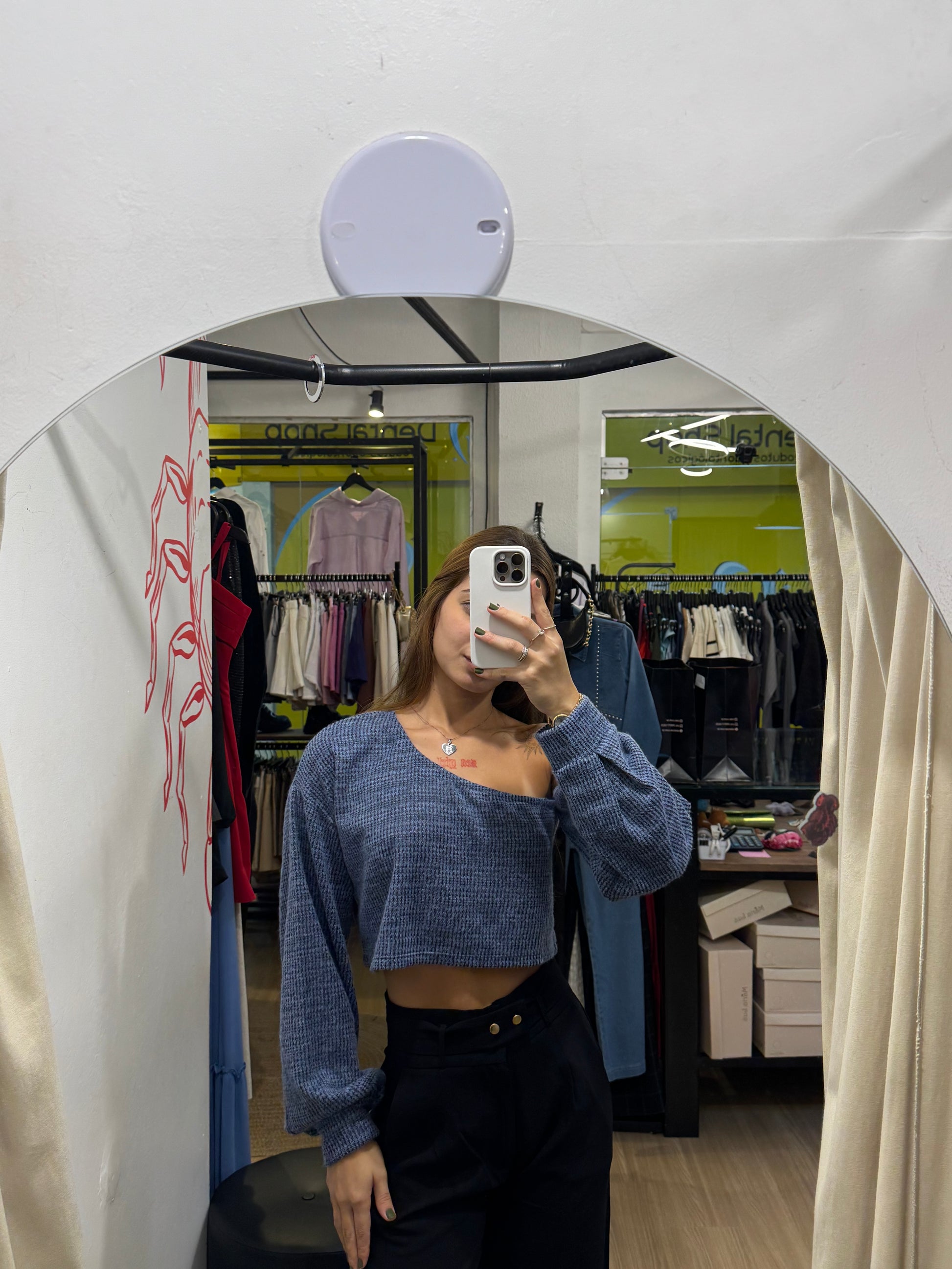 Feito em malha felpuda com alta elasticidade, nosso cropped proporciona conforto e estilo. Sua modelagem ampla e decote assimétrico adicionam uma elegância simples, enquanto a manga longa e o punho aplicado com prega garantem um toque moderno. A barra simples completa o look com sofisticação.