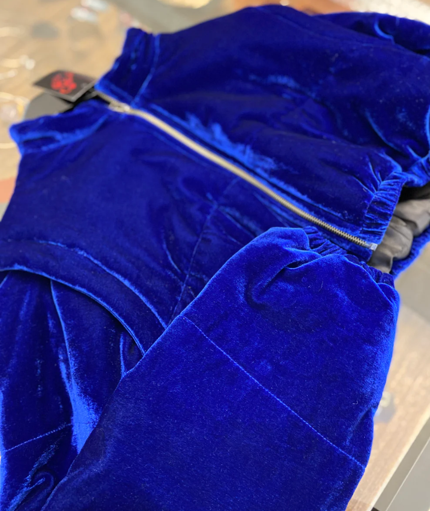 Jaqueta puffer veludo azul royal
